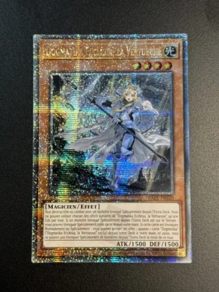 Les Platinum Secret Rares, quant à elles, présentent un défi plus complexe à l’identification avec leur motif diagonal holographique bordant l’illustration et la boîte de texte, une nouveauté destinée à les distinguer davantage des Quarter Century Secret Rares.
