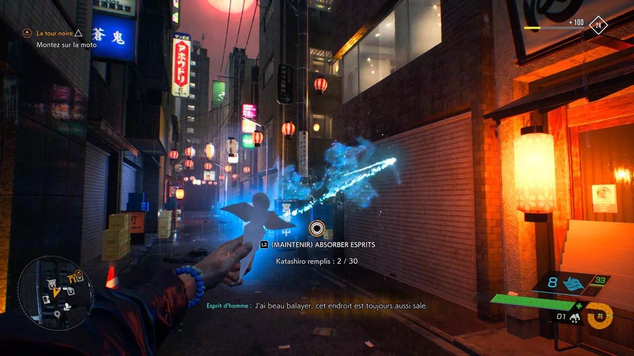 Puisque l’on parle d’argent, il est important de mentionner les quêtes secondaires du jeu qui viendront rythmer l’aventure d’Akito et KK dans les ruelles de Shibuya à Tokyo. Outre la campagne principale qui ne vous prendra royalement que 10 bonnes heures en prenant votre temps, Ghostwire Tokyo est constitué de pas mal d’objectifs annexes souvent en rapport avec l’exorcisation.