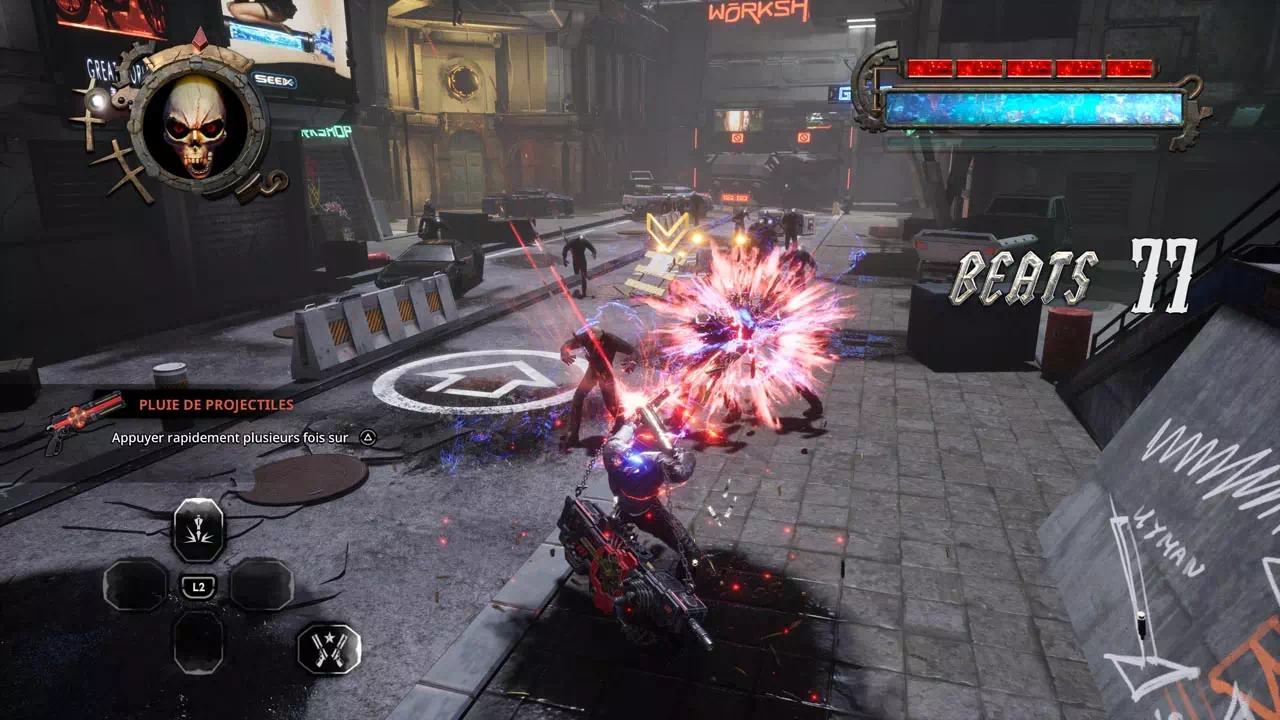 Ceci conditionnera l’attribution de points à dépenser dans un arbre de compétences ou dans une liste d’enchaînements à acheter. De fil en aiguille, l’expérience de jeu gagne en action. Là où l’on partait de simples tirs et coups de cercueils, on arrive relativement vite à enchaîner les attaques à distance et au corps à corps et faire valser les ennemis sous une pluie de balles et de compétences ultime.