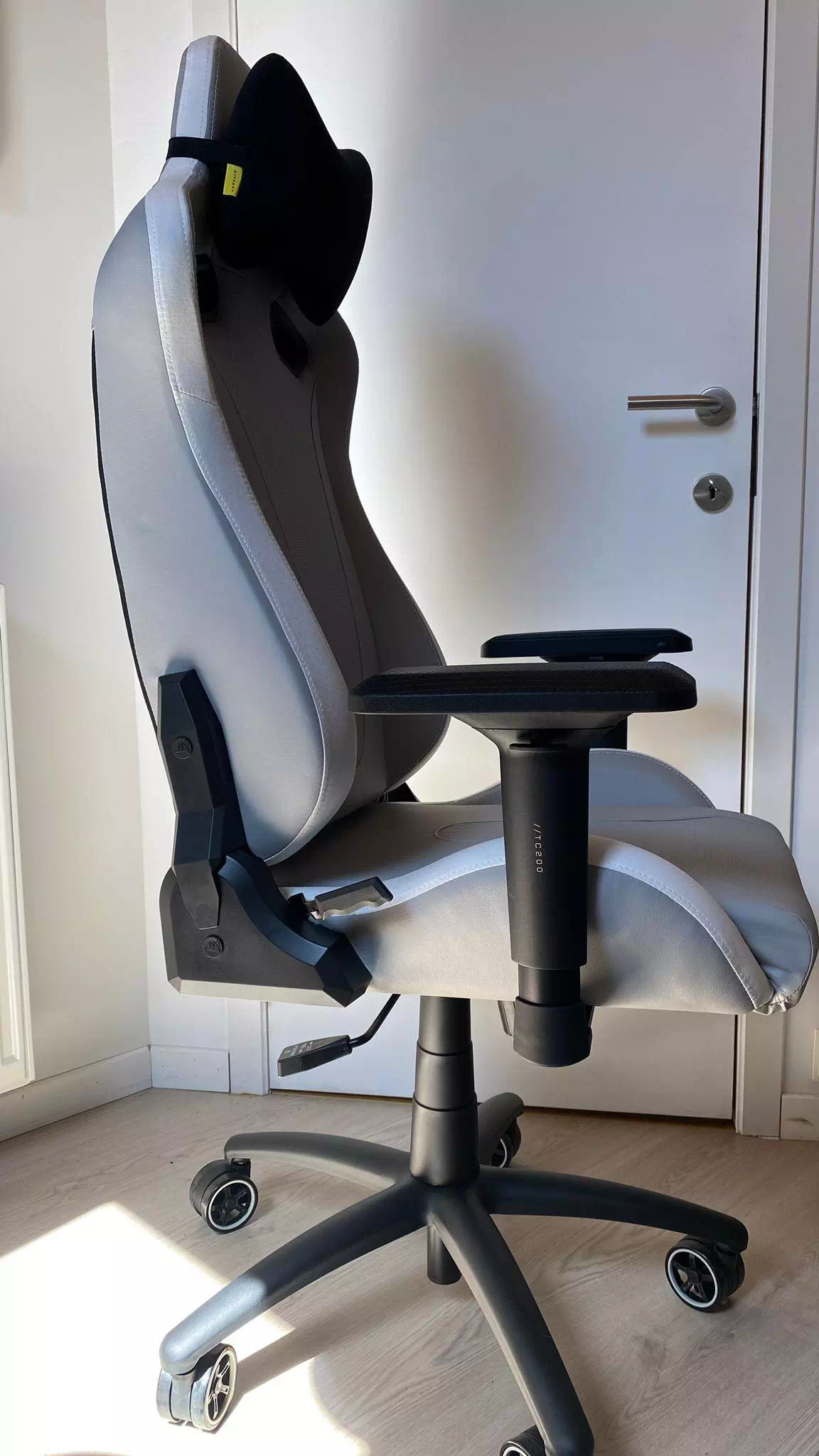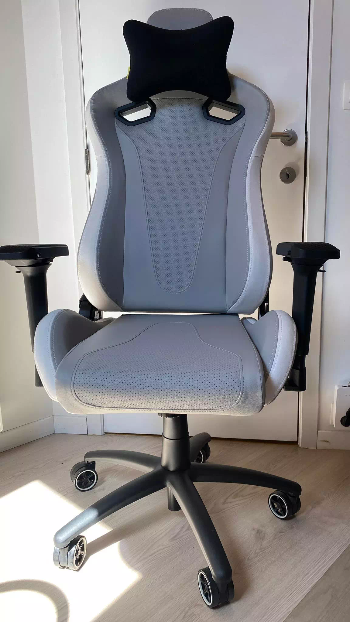 Elle possède plusieurs options qui font d’elle une chaise véritablement intéressante comme des accoudoirs 4D réglables à souhait, des roues de 75 mm pour une glisse aisée, un dossier inclinable de 90 à 180 degrés ainsi qu’un coussin de tête à la finition exemplaire et lui aussi moelleux.