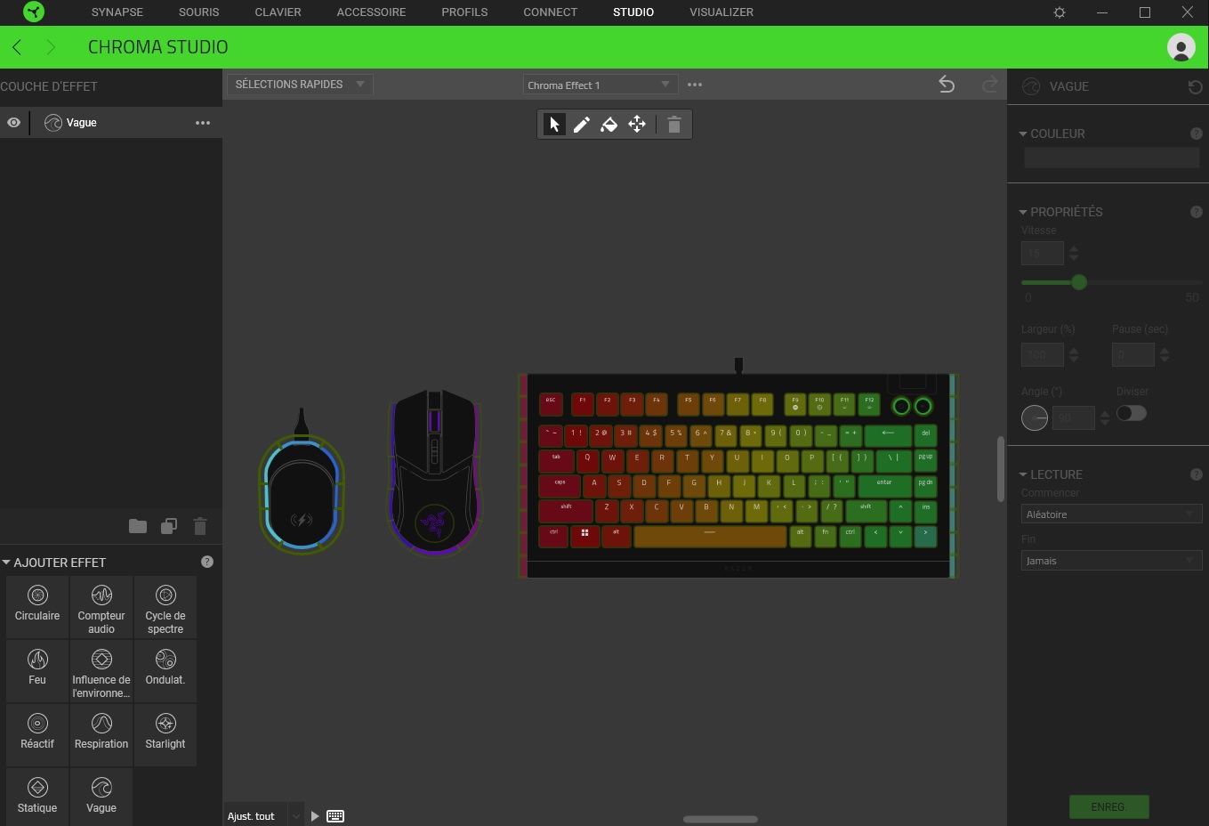 Le Chroma Studio, quant à lui, se présente comme un véritable laboratoire de création où l’utilisateur peut élaborer ses propres effets lumineux. Ces effets peuvent ensuite être synchronisés sur l’ensemble des appareils compatibles Razer Chroma, et il est même possible de les associer à des jeux spécifiques. Si Synapse peut parfois se montrer un brin complexe à naviguer, il n’en demeure pas moins l’un des logiciels les plus complets de sa catégorie.