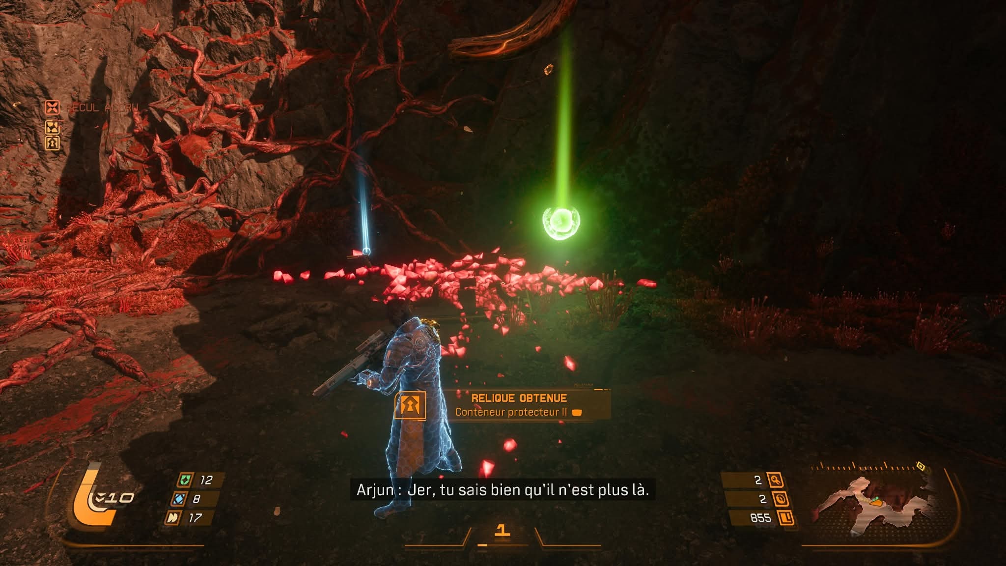 D’autres ajouts tout aussi importants rendent l’expérience encore plus enrichissante selon nous. Saros est un rogue-like, ça c’est un fait, mais il propose une découverte et des biomes autrement. Vos raids dans chaque biome peuvent être réalisés entre 20 minutes et une heure, en fonction de votre exploration. Car oui, Saros joue un peu sur votre curiosité afin de vous récompenser et vous permettre d’obtenir divers fichiers pour comprendre ce qui est arrivé aux précédentes équipes d’exploration.