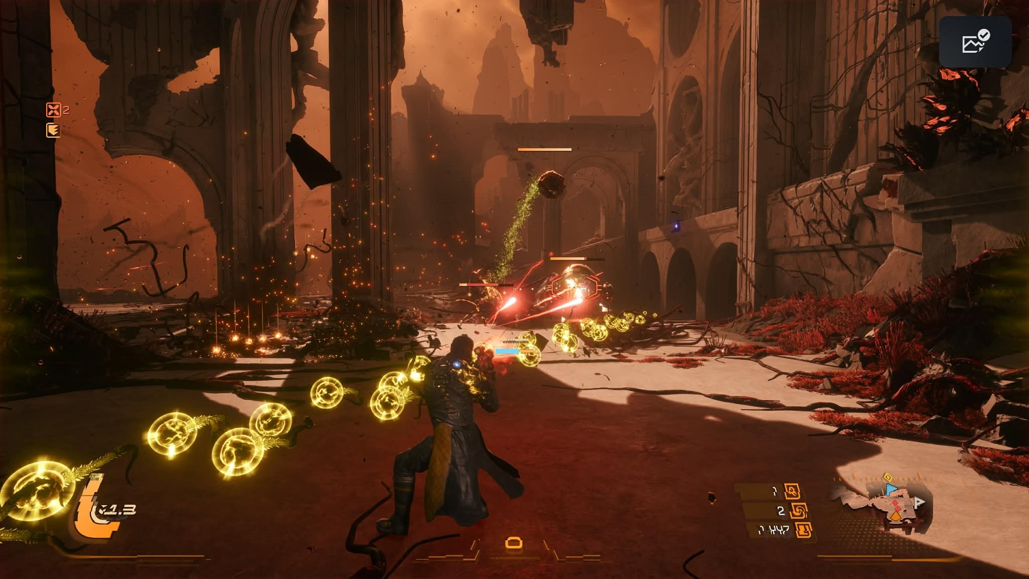 Durant vos raids, vous traverserez des couloirs linéaires, qui sont en fait les biomes d’un même monde. L’enchainement d’action est souvent le même. Vous débutez dans un biome, traverses des couloirs, puis vous tombez sur des salles avec des ennemis que vous devrez vaincre afin de pouvoir passer aux couloirs et à la salle suivante. Le but est de vous mettre à l’épreuve, mais également de vous permettre d’obtenir de meilleures armes et compétences afin d’affronter à la toute fin du biome un boss.