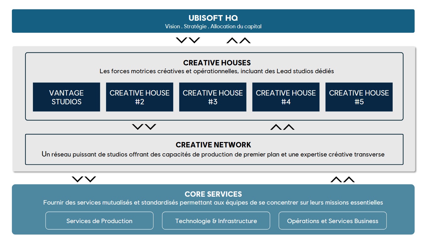 Ubisoft réorganise sa production autour de cinq pôles créatifs majeurs, appelés Creative Houses. Chacun de ces groupes s’occupe d’un type de jeu précis et gère tout, du développement à la commercialisation, en passant par les relations avec les joueurs. L’idée est de rendre les équipes plus autonomes et plus efficaces.
