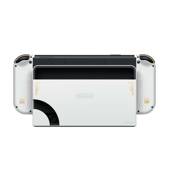 La console collector est au coeur des rumeurs depuis un bon bout de temps puisque des visuels avaient déjà fuité. Mais elle est aujourd’hui une réalité et sera disponible à partir du 28 avril en magasin. Elle sera également accompagnée d’une manette Pro et d’une pochette officielle brandés The Legend of Zelda: Tears of the Kingdom. La console comporte donc un socle HDMI de couleur blanche avec le symbole d’Hyrule sur le devant. La console, elle, arbore de petits motifs sur le pourtour de sa coque tandis que les Joy-Con sont de couleur dorée, eux aussi ornés de petits motifs runiques.