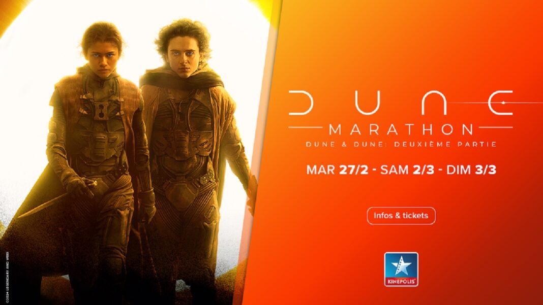 Pour l’avant-première le 27 février, les festivités débuteront à 17 heures, avec la projection du premier volet de Dune. Après une pause à 18h00, Dune : Deuxième partie prendra le relais à 20h35, et l’événement se clôturera à 23h46, laissant les spectateurs imprégnés de l’univers d’Arrakis.