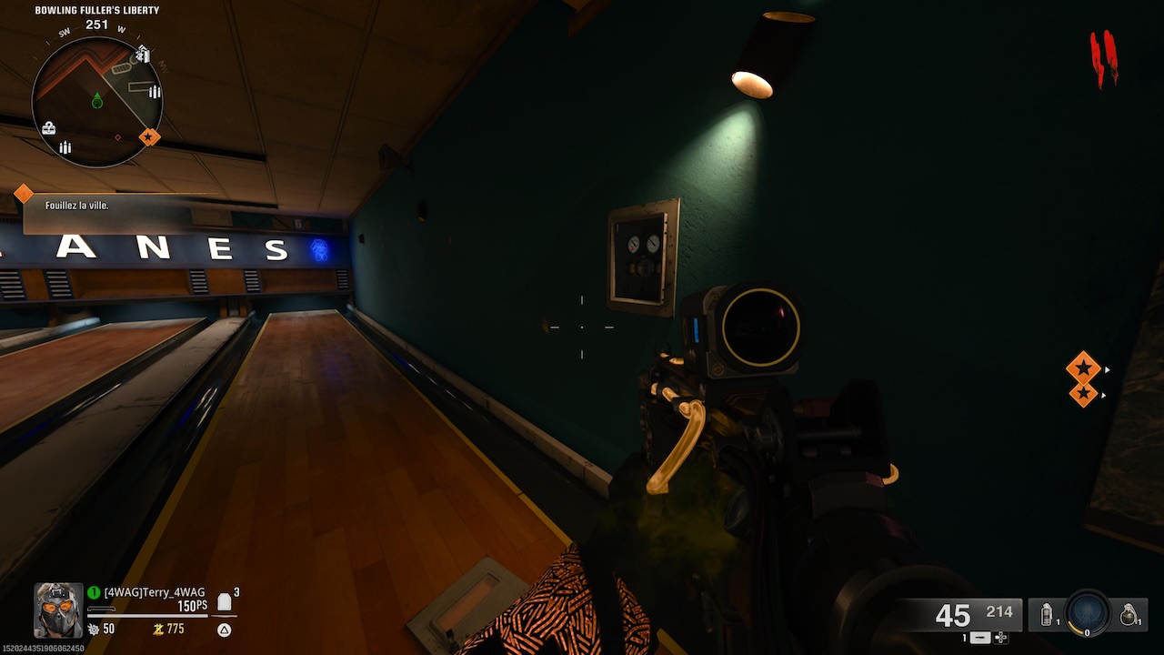 Dès les premières manches, commencez par amasser des points en éliminant des zombies. Vous en aurez besoin pour ouvrir la première porte derrière le Motel, où l’assemblage de l’arme commence. Une fois cette zone débloquée, dirigez-vous vers le bowling et cherchez une vanne. Celle-ci se trouve à côté de la porte du fleuriste, et il faudra la placer à un endroit précis pour activer la pression. Ne vous précipitez pas pour passer à la manche suivante, car les zombies générés par cette manoeuvre seront plus résistants.