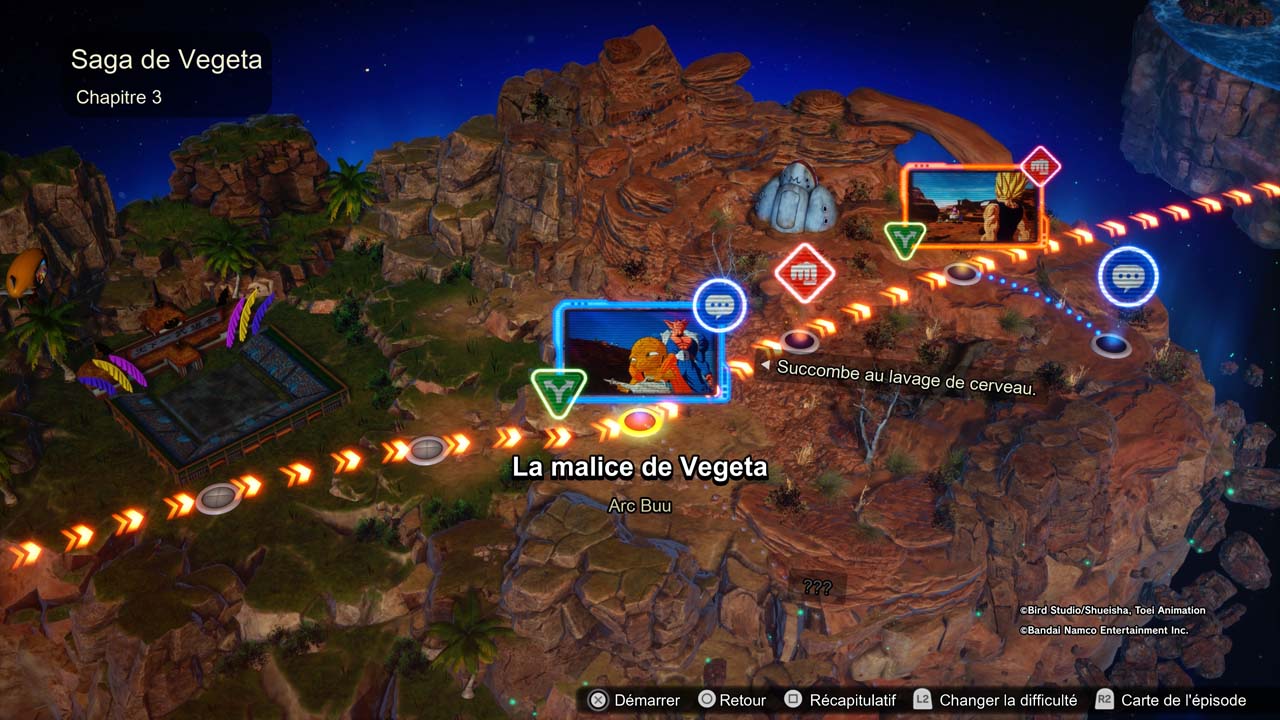 Dans l’épisode de Vegeta, comme dans tous les autres, certains choix peuvent totalement changer la tournure de l’histoire. L’arc Boo, par exemple, cache une route alternative intéressante. Le combat intitulé « La malice de Vegeta » propose un moment clé : vous pouvez soit succomber au lavage de cerveau de Babidi et rester sur la route principale, soit débloquer un scénario alternatif en remplissant une condition cachée.