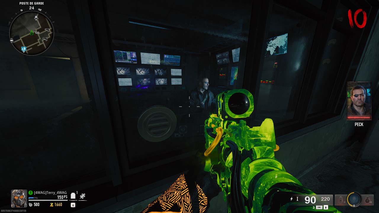 - Payer 5000 points à Peck pour qu’il affiche le code à sa gauche (flemme, c’est ce qu’on a fait!)