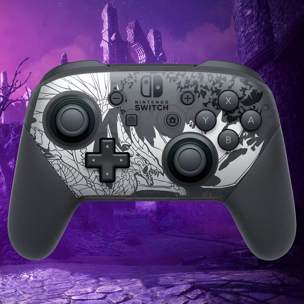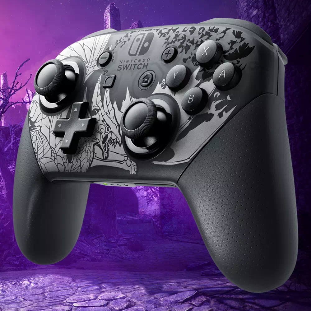 Après un premier modèle proposé pour la sortie de l’excellent jeu Monster Hunter Rise de Capcom, Nintendo dévoile aujourd’hui un second modèle pour l’extension Sunbreak à venir. Celui-ci sera à l’effigie du monstre Malzeno et reprendra le même code de couleurs classique noir/gris du modèle précédent.