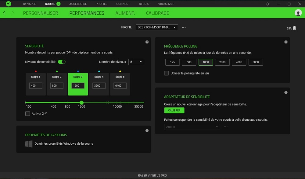 En plus de la fonction de correspondance de sensibilité, le Viper V3 Pro offre la possibilité de régler le DPI par incrément d’une seule unité. Cette granularité dans les réglages du DPI permet aux joueurs de personnaliser leur expérience de manière beaucoup plus fine que les réglages DPI traditionnels par paliers. Les joueurs peuvent donc ajuster leur souris pour qu’elle réponde parfaitement à leurs besoins spécifiques, que ce soit pour un jeu particulier ou pour un style de jeu spécifique.