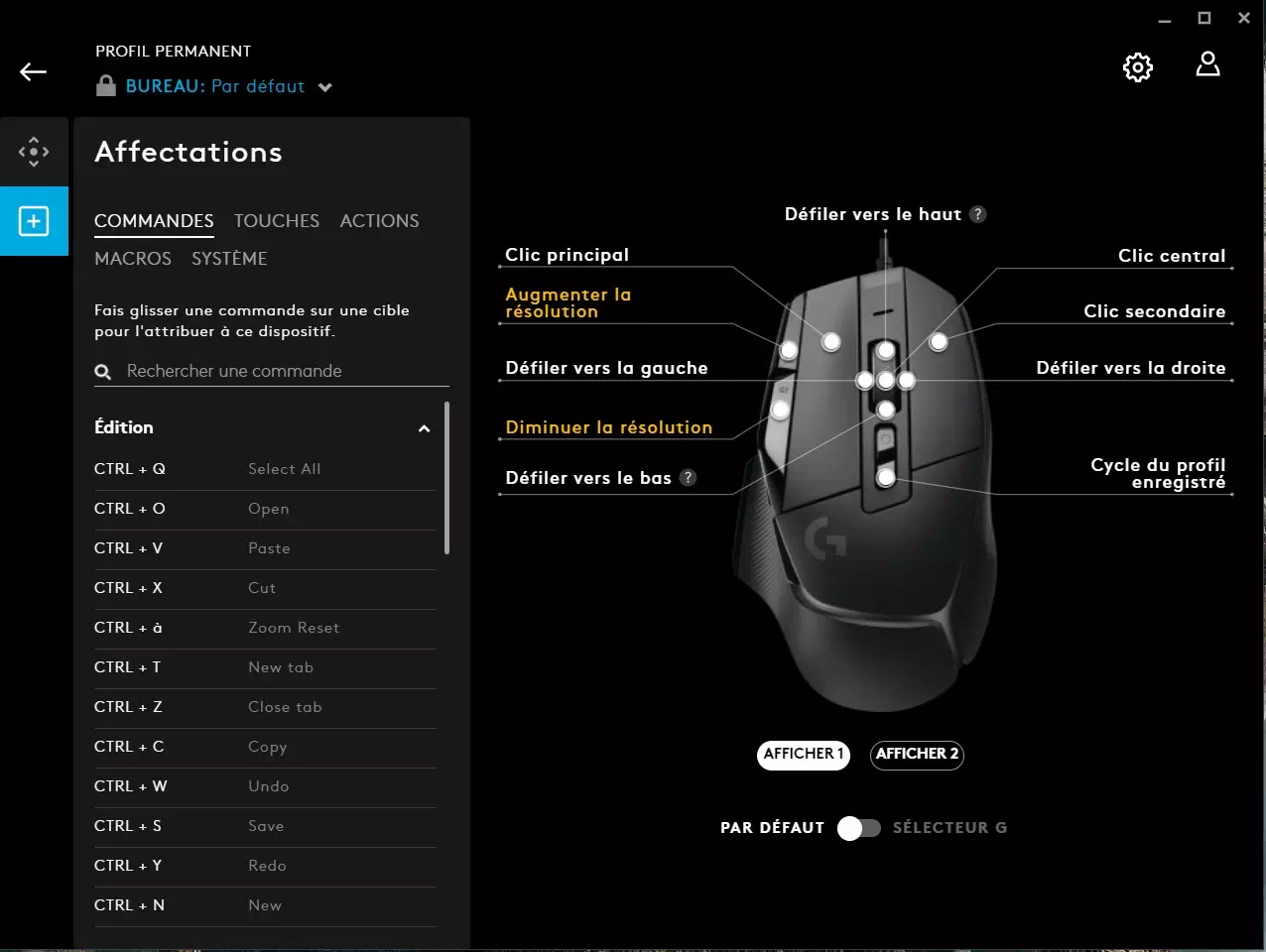 L’application Logitech G Hub, le point central de la souris