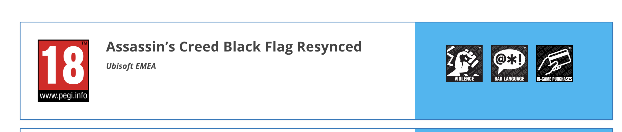La fiche publiée par le PEGI ne fournit pas de détails sur le contenu spécifique de cette édition “Resynced”, mais elle confirme que le jeu comportera des éléments de violence, un langage grossier et des achats intégrés. Ces mentions correspondent aux caractéristiques habituelles de la série, mais l’apparition de cette classification suggère un lancement proche ou une révélation imminente par Ubisoft.