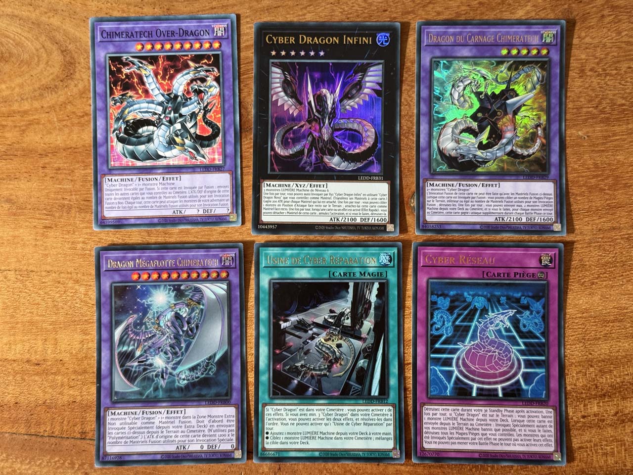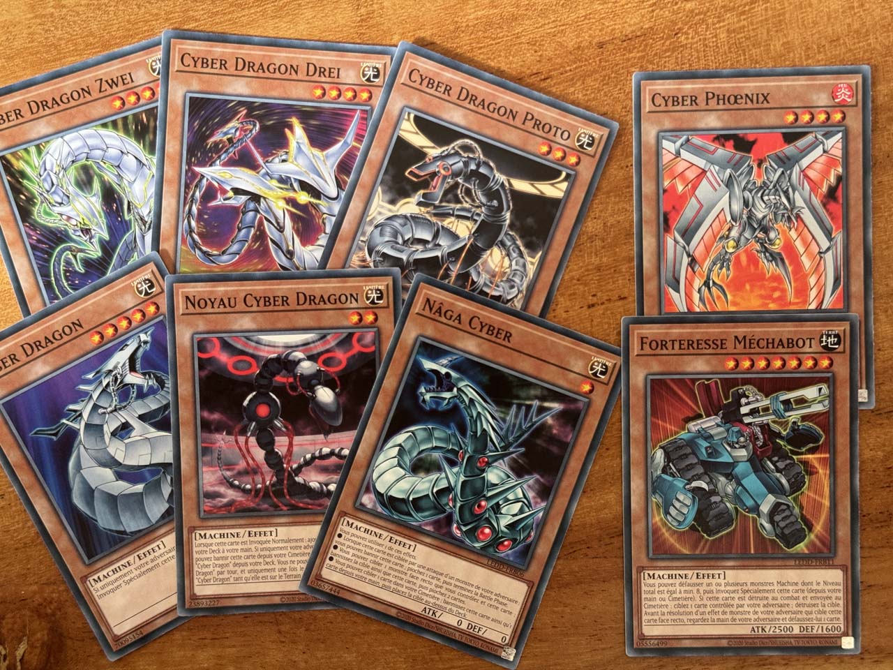 Le deck Cyber Dragon ouvre le bal, et il a de quoi attirer l’attention des fans de l’archétype. Parmi les cartes réimprimées, on retrouve des incontournables comme Usine de Cyber Réparation et Cyber Réseau, même si cette dernière n’a jamais vraiment brillé en compétition. Plus notable, la présence de Dragon Cyber Tête-Fusion Canon et de Cyber Dragon Infini , ce dernier étant une réimpression qui était particulièrement attendue à l’époque pour rendre le deck plus accessible.
