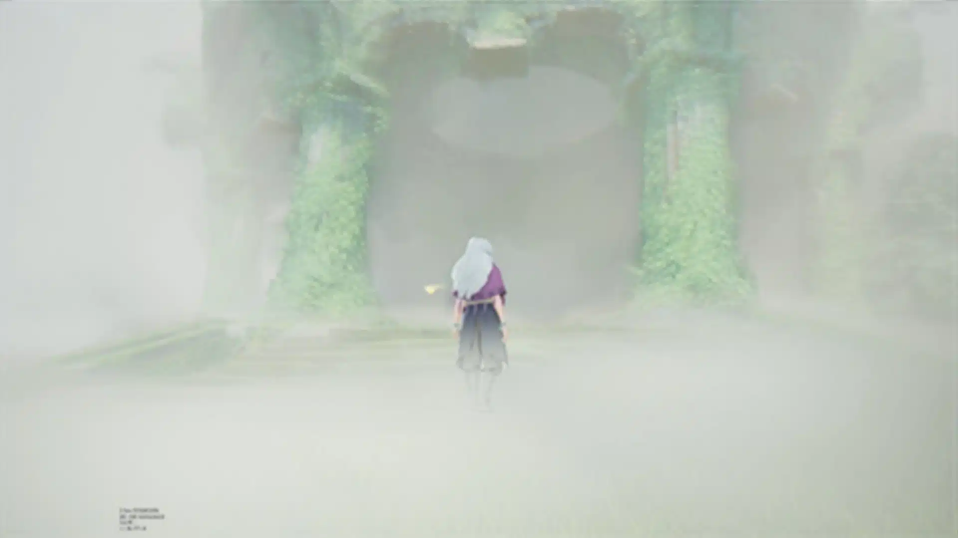 Les images proviennent du portfolio en ligne d’un artiste ayant travaillé sur le projet, révélant une version du jeu proche de son arrêt. Si l’on y voit principalement des éléments d’interface utilisateur, certaines captures montrent également des extraits de gameplay, fidèles à l’univers graphique des trailers, avec un personnage principal devant un cercle de pierres marqué ou à proximité d’un édifice évoquant un temple ancien.