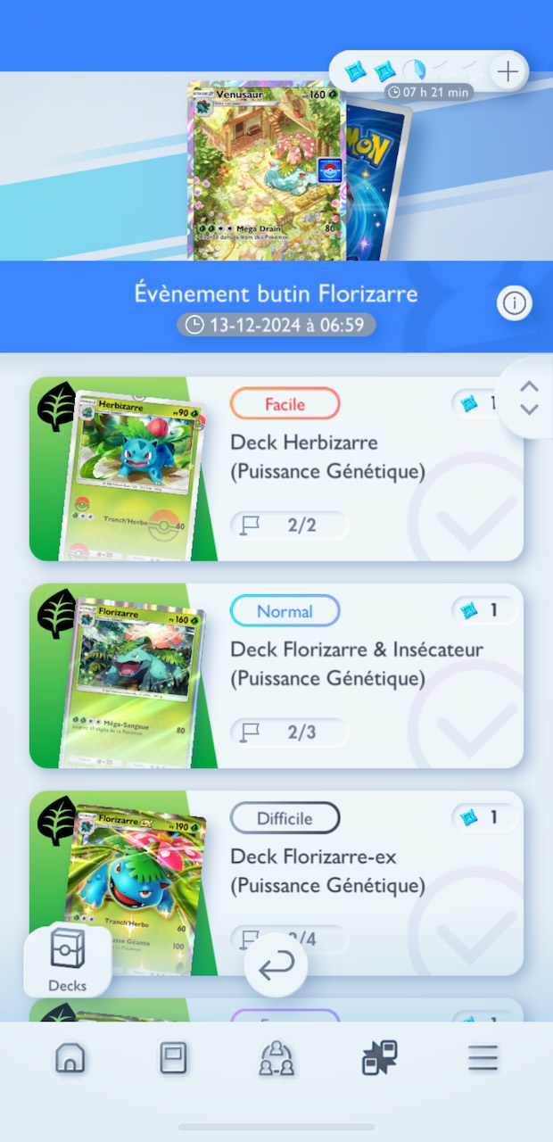 Pour décrocher une carte promo de Florizarre, participez aux batailles disponibles dans la section dédiée à l’événement. Remporter ces combats vous donne une chance de recevoir un pack Promo-A Vol. 2, mais ces récompenses aléatoires ne garantissent pas une carte à chaque victoire. Préparez-vous à persévérer et à utiliser vos ressources efficacement pour maximiser vos chances.