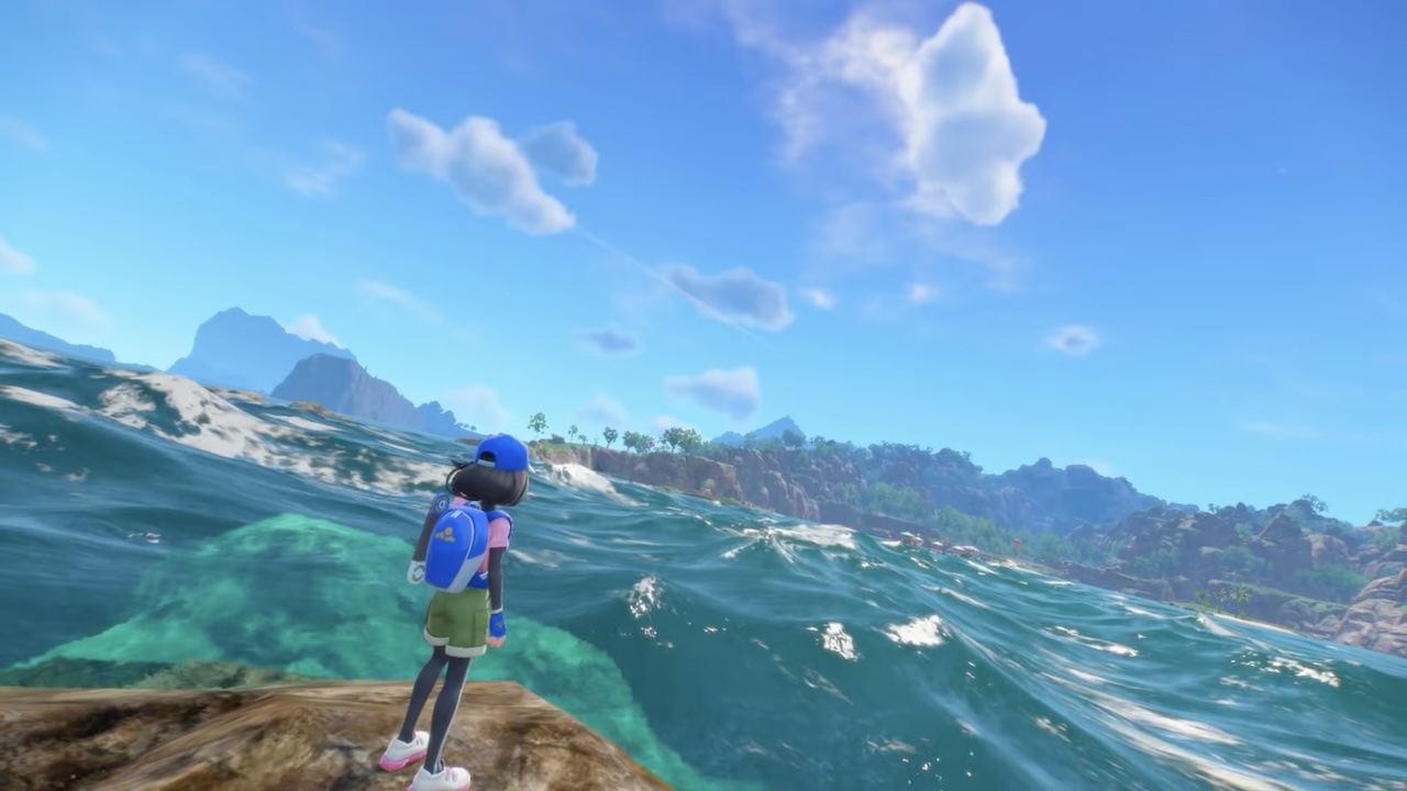Exit les environnements cloisonnés et sobres de Légendes Pokémon Z-A, on retourne ici à une map beaucoup plus verdoyante, avec la mer, un volcan, des prairies… bref, un véritable petit coin de paradis.