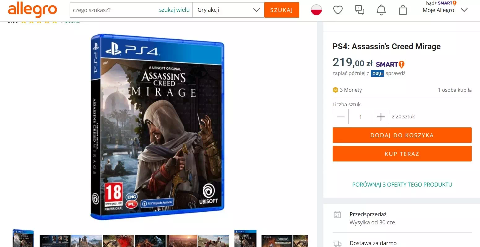 Si l’on en croit le revendeur polonais Allegro, Assassin’s Creed Mirage devrait sortie le 30 juin 2023 sur PS4, PS5, Xbox et PC. Cette date précise est un vendredi, un jour symbolique pour les sorties de jeux vidéo, mais pas que. Mais il s’agit également de la dernière date du mois, ce qui pourrait signifier qu’il s’agit d’une date « placeholder » destinée à renseigner le champ de la fiche descriptive en l’absence de réelle date de sortie communiquée.