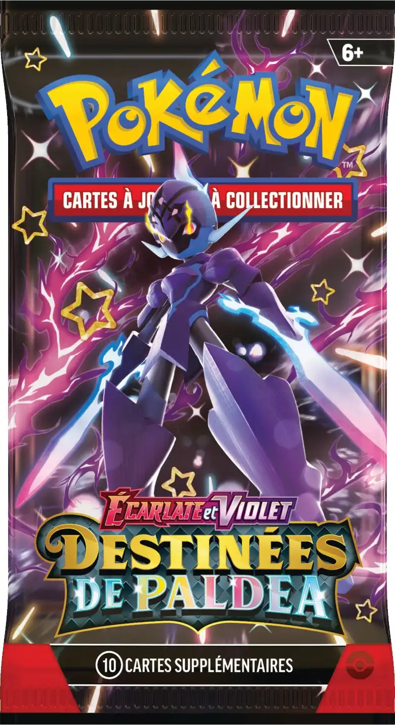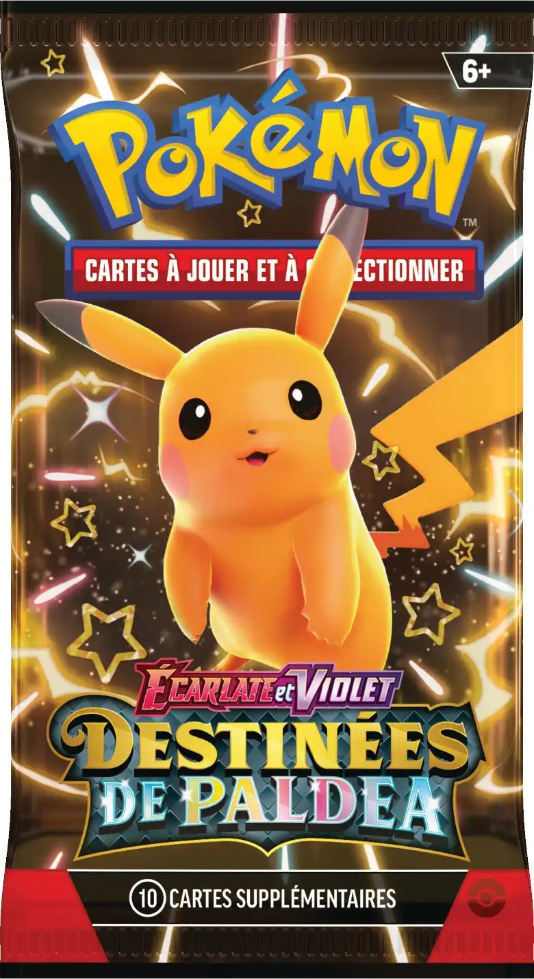 Certaines cartes de l’extension Écarlate et Violet – Destinées de Paldea se distinguent par un style artistique unique, offrant une vision nouvelle de ces Pokémon chromatiques. La série comprend également des cartes « hyper rare », avec un effet de brillance en relief, conférant à ces cartes une valeur esthétique et de collection exceptionnelle.