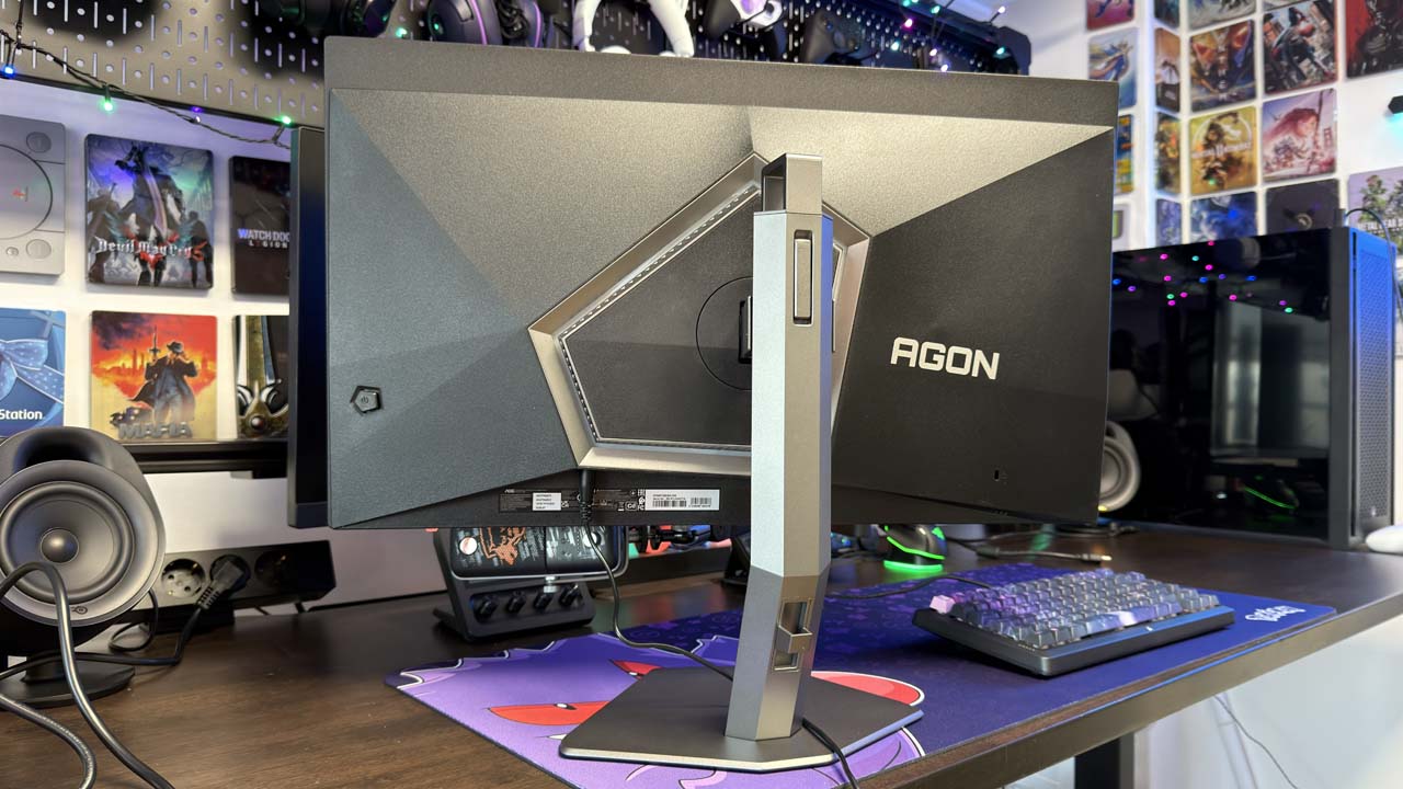 Côté connectique, le AG276QZD2 ne fait pas dans la demi-mesure. Il propose deux ports HDMI 2.0, limités à 144 Hz, mais surtout deux DisplayPort 1.4 compatibles 240 Hz. Un hub USB à deux ports est aussi présent, avec une prise jaune dédiée à la recharge de périphériques. Enfin, des haut-parleurs intégrés sont inclus, mais leur qualité audio reste secondaire et ne remplace pas un casque ou des enceintes d’appoint.