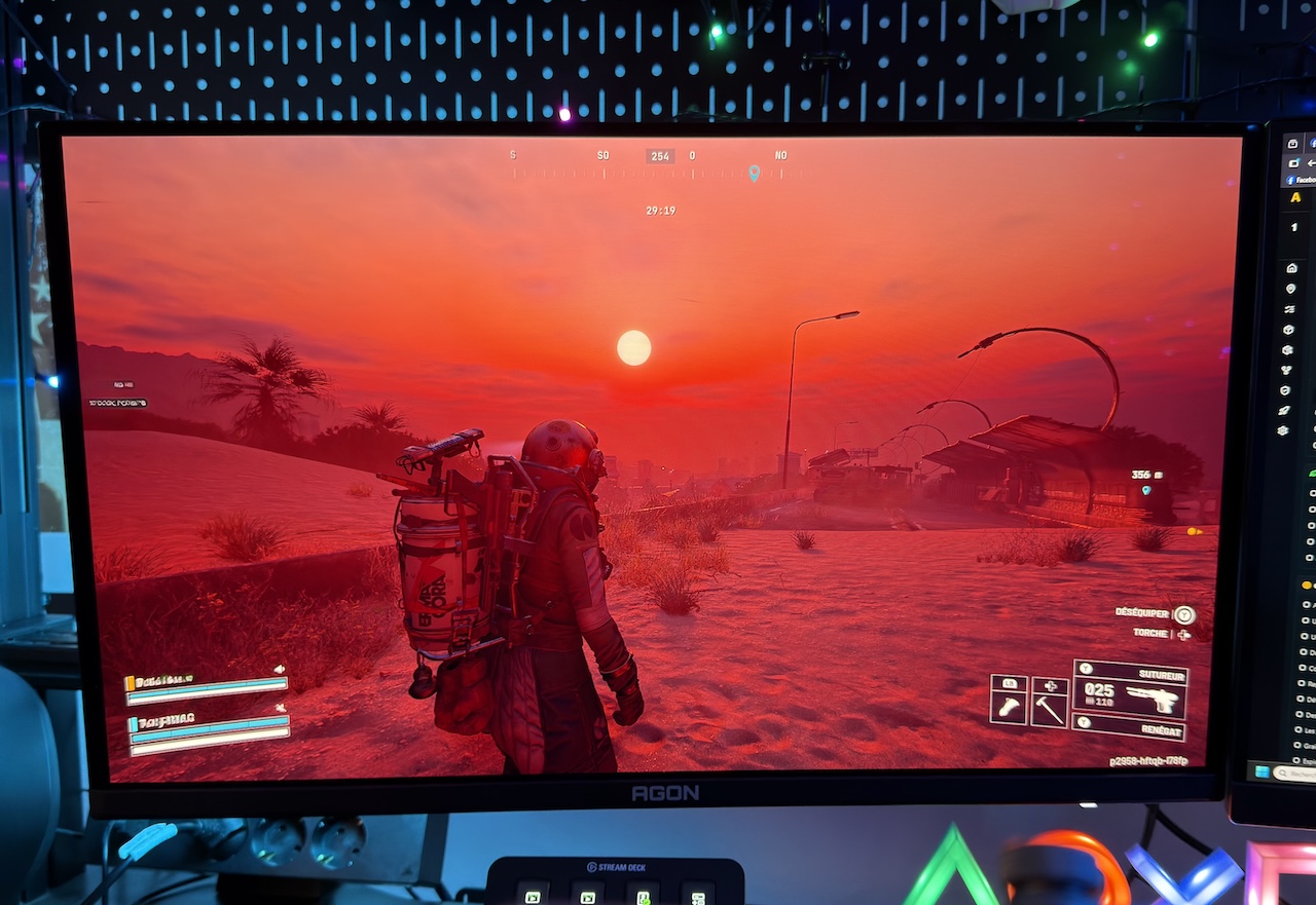 Une autre de ses grandes qualités est la précision des couleurs. Avec un Delta E moyen de 0,77, l’écran assure une fidélité chromatique presque parfaite, y compris pour un usage semi-professionnel dans le montage, la photo ou l’étalonnage. La technologie QD-OLED offre également un avantage supplémentaire sur les modèles W-OLED : la structure sous-pixel RGB tri-dot, qui préserve la netteté du texte, idéale pour un usage mixte bureautique et gaming. Déjà sur le papier, le AG276QZD2 coche toutes les cases techniques. Mais c’est évidemment en jeu qu’il déploie tout son potentiel.