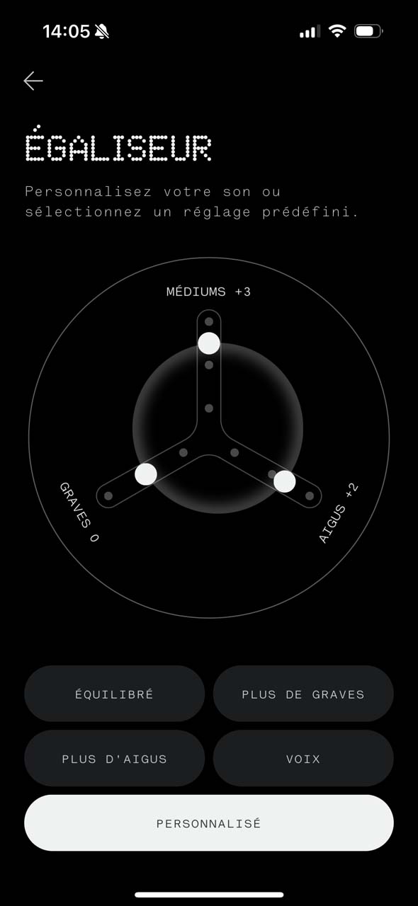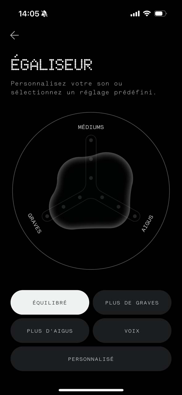 - L’égaliseur assez limité sur l’application