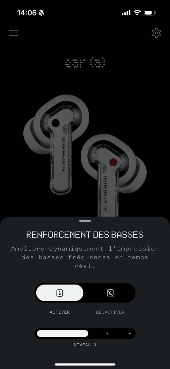 Pour ceux qui recherchent des basses encore plus puissantes, les Nothing Ear (a) proposent un mode « Plus de graves ». Cette fonctionnalité est activable via l’application Nothing X dédiée et permet d’augmenter la présence des basses, rendant ces écouteurs particulièrement adaptés aux genres musicaux tels que le hip-hop, l’électro ou les musiques urbaines. Cependant, même sans cette optimisation digitale, les basses restent nettes et sans distorsion, ce qui est rare à ce niveau de prix.