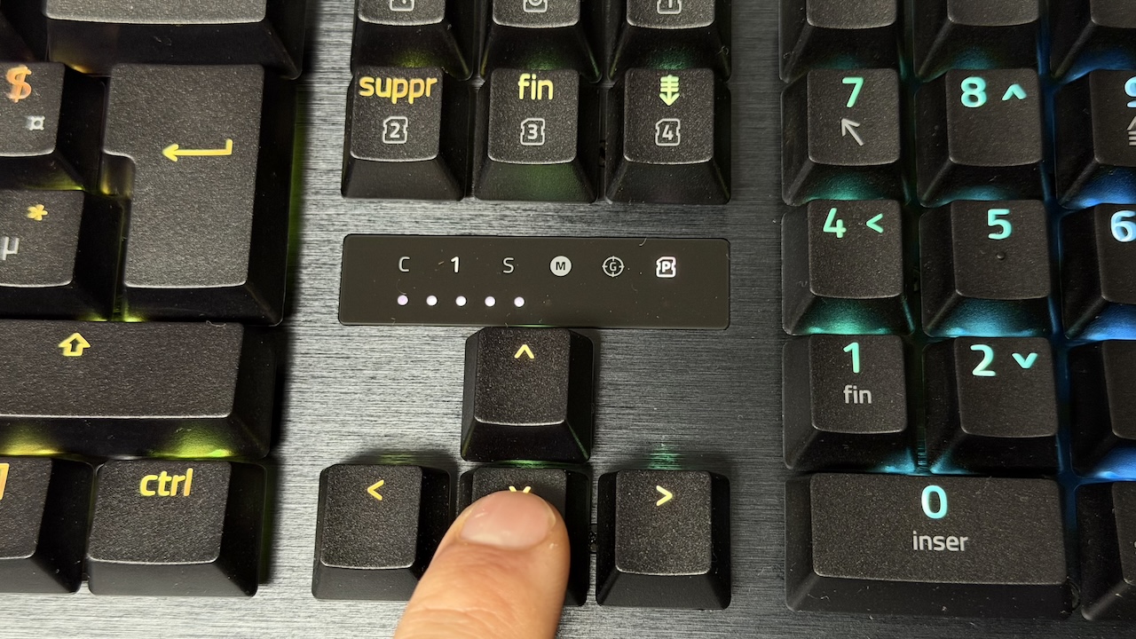 Le principal atout de ce nouveau Razer Huntsman V3 Pro 8K est clairement ses switchs optiques analogiques de 2ème génération, capables de détecter et afficher les différents niveaux d’enfoncement avec une précision extrême. L’utilisateur peut définir un point d’activation entre 0,1 mm et 4 mm, en fonction de ses besoins. Razer intègre un raccourci physique permettant de passer instantanément d’un mode « travail » (actuation à 2,5 mm) à un mode « jeu » (0,7 mm), pour plus de réactivité lors des sessions intenses.