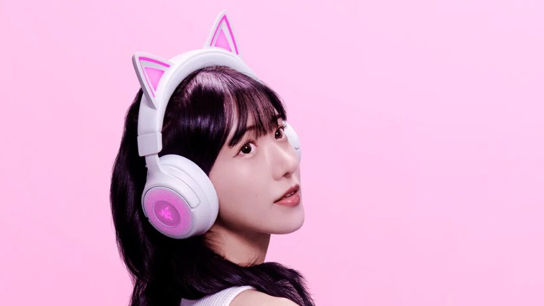 Razer Kraken Kitty V3 Pro – Casque Gaming sans Fil RGB Kitty – Oreilles de Chat réactives pour Le Streaming – Membrane Triforce 40 mm, Hyperspeed Wireless et Bluetooth, THX Spatial Audio