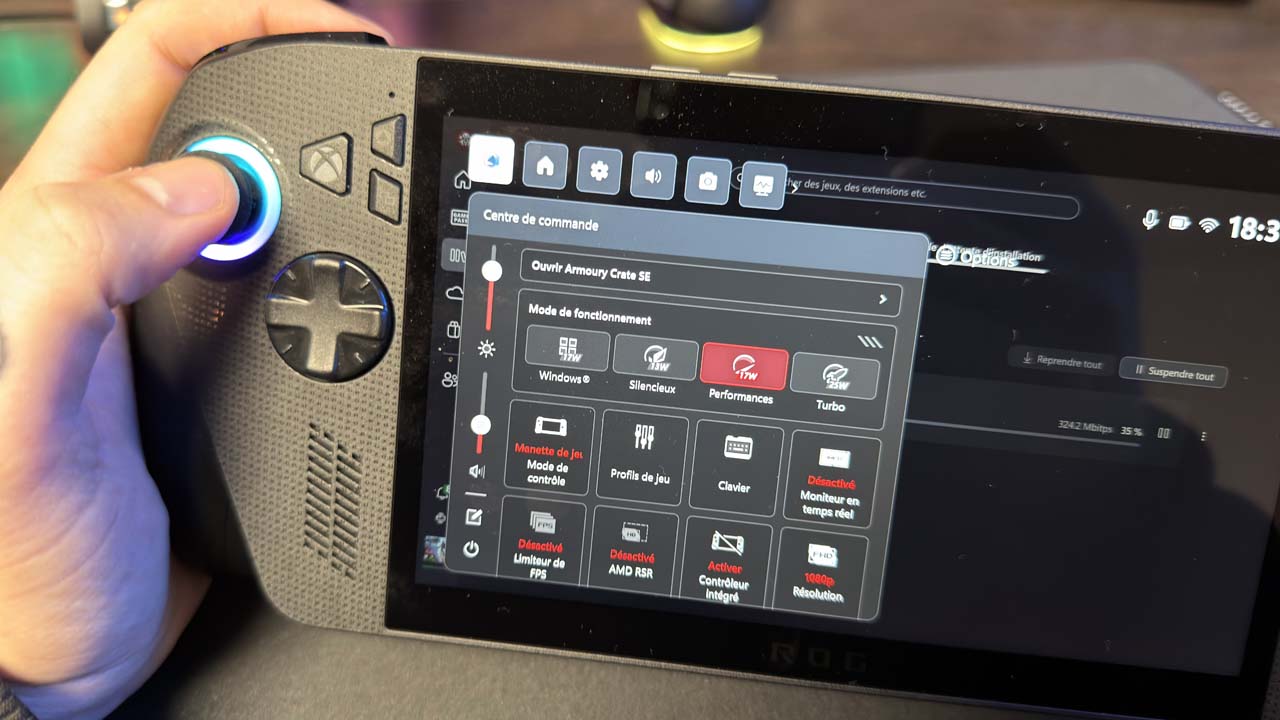 Certains aspects relèvent clairement de l’univers console : le Quick Resume permet de reprendre une session là où elle s’était arrêtée, la navigation en mode manette est soignée, et l’interface évite les écueils habituels du bureau Windows classique. Les optimisations logicielles sont bien réelles, avec un gain de 2 Go de mémoire vive par rapport à une configuration Windows standard — un point non négligeable pour une machine dont la RAM est partagée avec la mémoire vidéo.