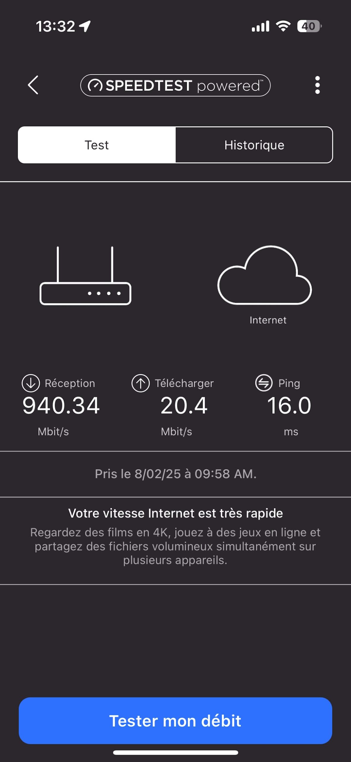 Les performances sont nettement supérieures à celles d’un routeur Wi-Fi 5, avec une navigation fluide et des téléchargements rapides dans les pièces principales. Cependant, en périphérie du signal, notamment en extérieur ou dans les pièces éloignées, le basculement entre les bandes 2.4 GHz, 5 GHz et 6 GHz manque parfois de réactivité.