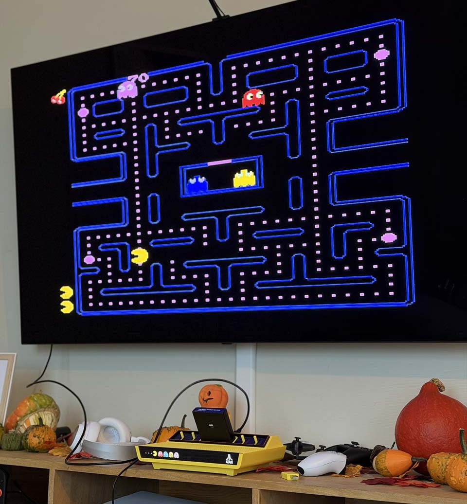 L’absence de Ms. Pac-Man et Junior Pac-Man se fait sentir. Ces titres auraient enrichi l’offre, mais leur intégration reste bloquée par des questions de droits. En revanche, les joueurs peuvent insérer leurs cartouches originales compatibles sans problème, à condition de les posséder déjà. Junior Pac-Man, réputé pour son exigence et sa fluidité sur 2600, fonctionne sans accroc.