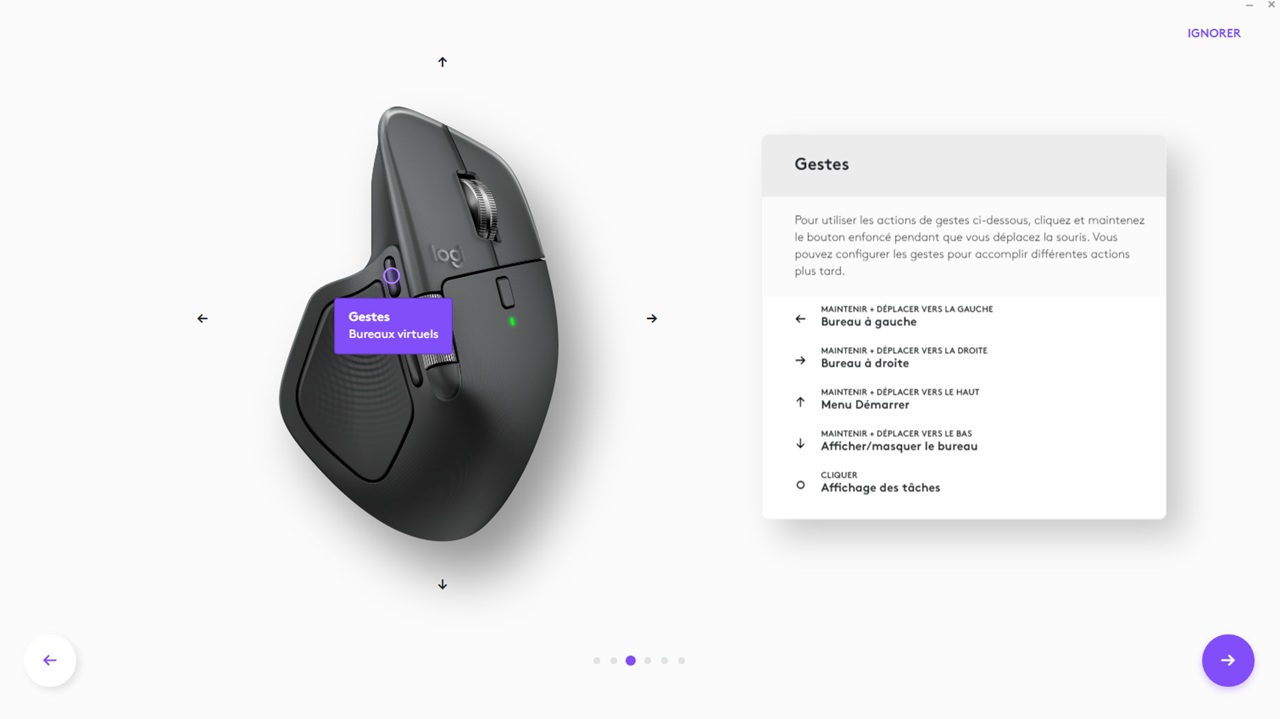 Autre ajout très intéressant, le retour haptique. Logitech intègre désormais de légères vibrations qui accompagnent certaines actions : navigation dans le menu circulaire, changement de bureau, alertes de batterie ou encore interactions dans Photoshop et Zoom. Bien que l’implémentation reste limitée à ce stade, le constructeur fournit une API ouverte, laissant présager de futures intégrations logicielles plus variées. Cette innovation apporte une dimension tactile nouvelle à l’usage de la souris, renforçant la précision et l’immersion.