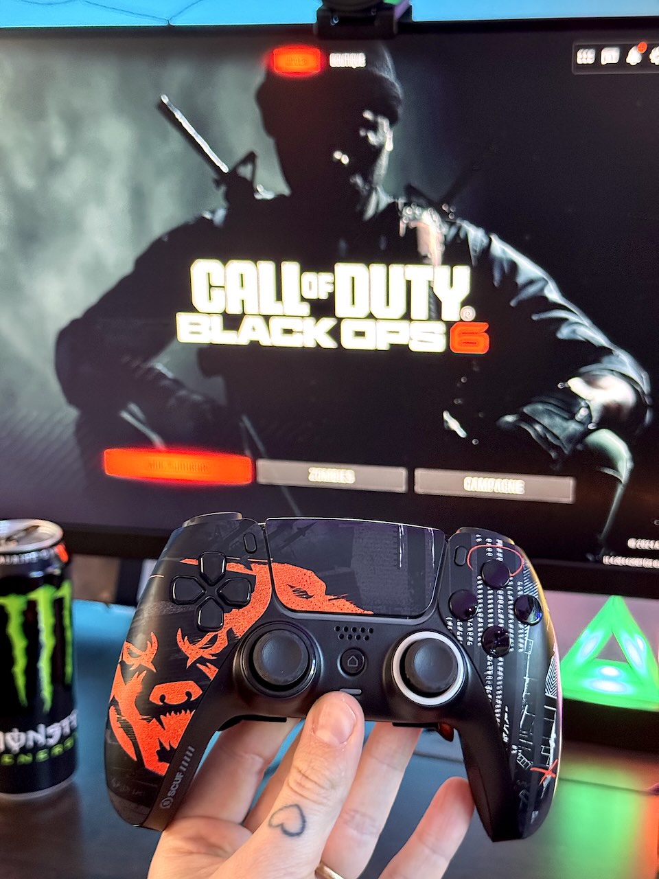 Dès que vous sortez la Scuf Reflex de son emballage, une chose saute aux yeux : son aspect premium. Elle reprend la silhouette de la DualSense, mais avec des touches de personnalisation bienvenues. Les finitions soignées, comme les textures antidérapantes et les options de couleur variées, montrent qu’on est dans une gamme supérieure. Le modèle Black Ops 6 que nous avons pu avoir en main ajoute un degré d’excitation pour les fans du jeu avec son design travaillé et unique. Après tout, ce modèle spécifique est le fruit d’un partenariat officiel avec Activision.