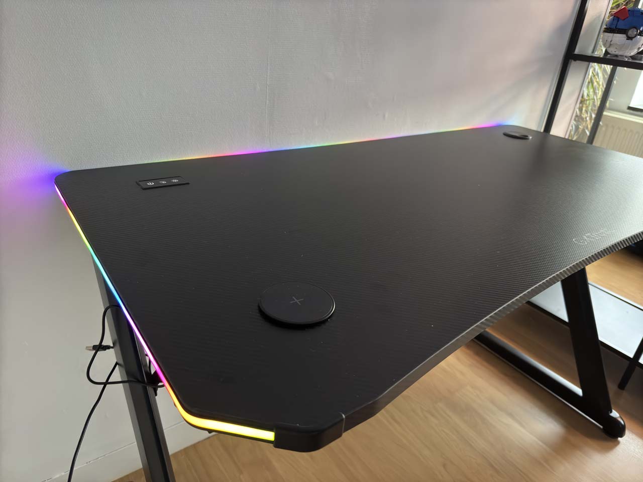 Enfin il faudra faire attention à ce que l’on dispose sur le bureau de Trust. D’une part parce que celui-ci contient un chargeur à induction pour votre smartphone, sur lequel il est par exemple déconseillé de mettre une carte de banque (la puce peut être démagnétisée). D’autre part, la petite interface tactile pour contrôler l’éclairage peut, tout comme le chargeur, être rayée. Globalement, nous avons aussi remarqué que le revêtement imitation fibre de carbone conservait assez bien les traces de doigts. Il sera donc peut-être judicieux de passer un coup de chiffon en microfibre de temps en temps pour avoir un résultat plus clean.