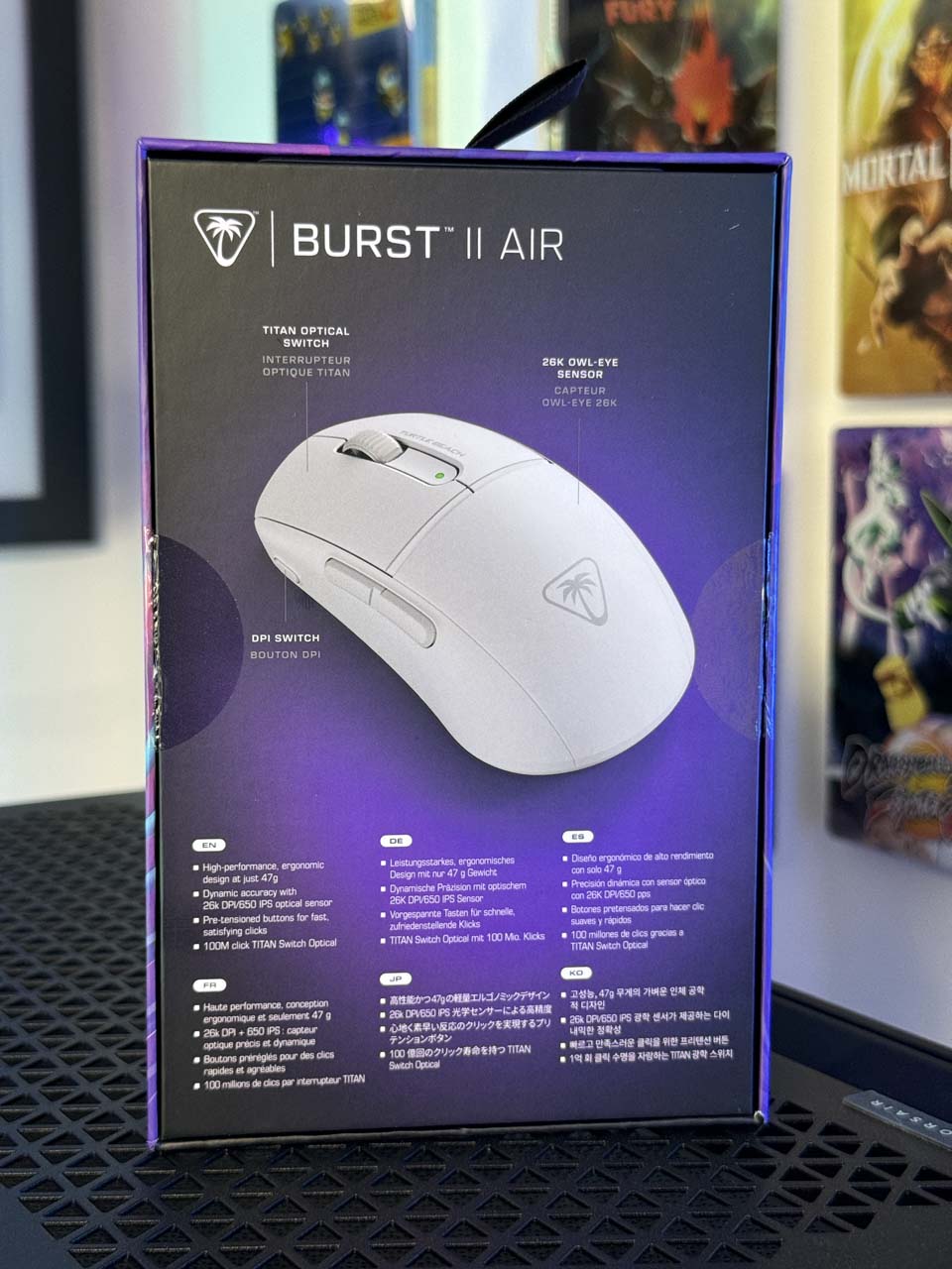 L’ergonomie de la Burst 2 Air permet une utilisation prolongée sans inconfort. La forme et la disposition des boutons favorisent une prise en main détendue, idéale pour les longues sessions de jeu. De plus, la légèreté de la souris (46 grammes) contribue à réduire la fatigue de la main, tout en offrant une excellente maniabilité.